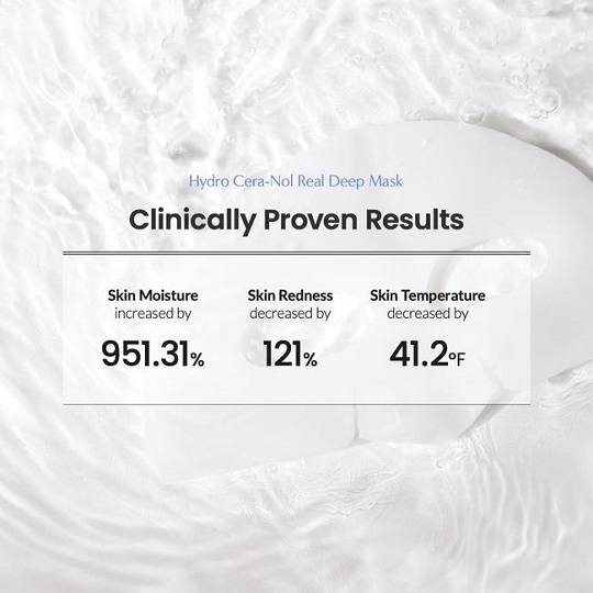 این ماسک در تستهای بالینی نشان داده است که تنها پس از یکبار استفاده، قرمزی پوست را تا 121٪ کاهش و میزان رطوبت را تا 951٪ افزایش میدهد. همچنین، توانایی خارقالعادهای در حفظ رطوبت تا 150 ساعت پس از استفاده دارد. با نفوذ آبرسانها تا ۱۵ لایهی پوستی، طراوت و لطافت ماندگاری ایجاد میکند.
